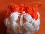 8) Farblich abwechselnd, aber wie die Runden zuvor, ringsum Büschelmaschen häkeln.