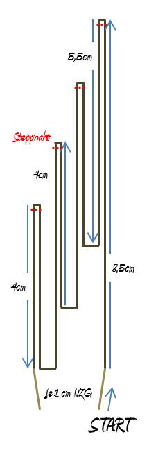 —Schritt (5-10) einmal für das 2.Kartenfach und dann auch für das 3.Kartenfach wiederholen—(21) 4 cm abtragen