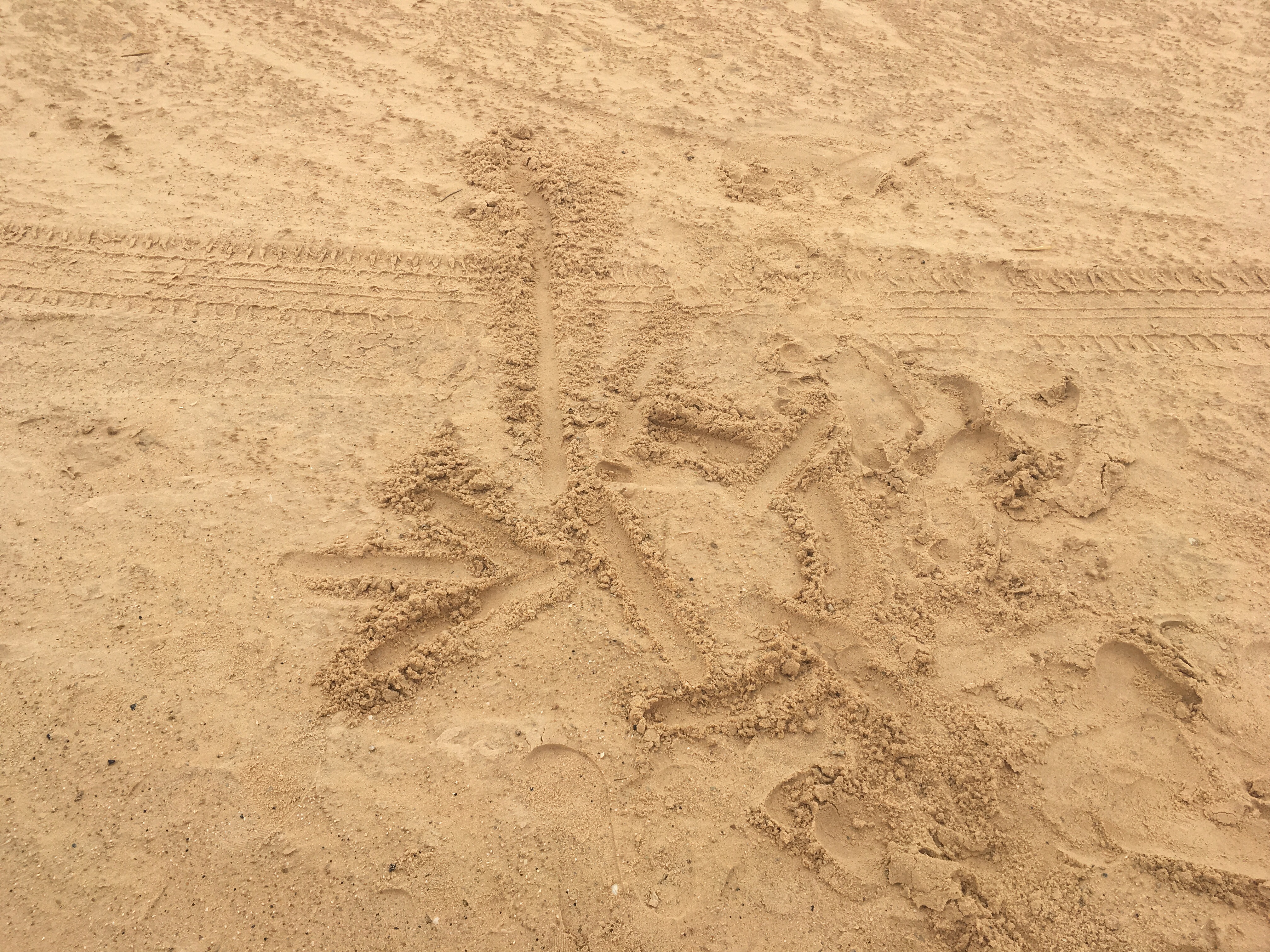 Dank dieser Zeichnung im Sand habe ich viele Dinge, die uns Naji (auf englisch) beibrachte, erst so richtig verstanden. Alles in allem war die Nebelpause also keineswegs umsonst sondern eine gute zusätzliche Theorie-Trainingseinheit!