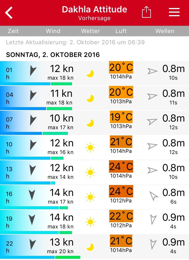 Leider wieder ein Tag mit weniger Wind. Damit ich aber endlich mal weiß, was mit zu wenig Wind eigentlich gemeint ist, lade ich mir so eine Wind App runter. Da kann ich endlich mitreden, wie viel Knoten denn so um uns herumwehen (wobei hier beim Spot in der App das Attitude Camp etwas südlich von uns, immer etwas stärkerer Wind hat).