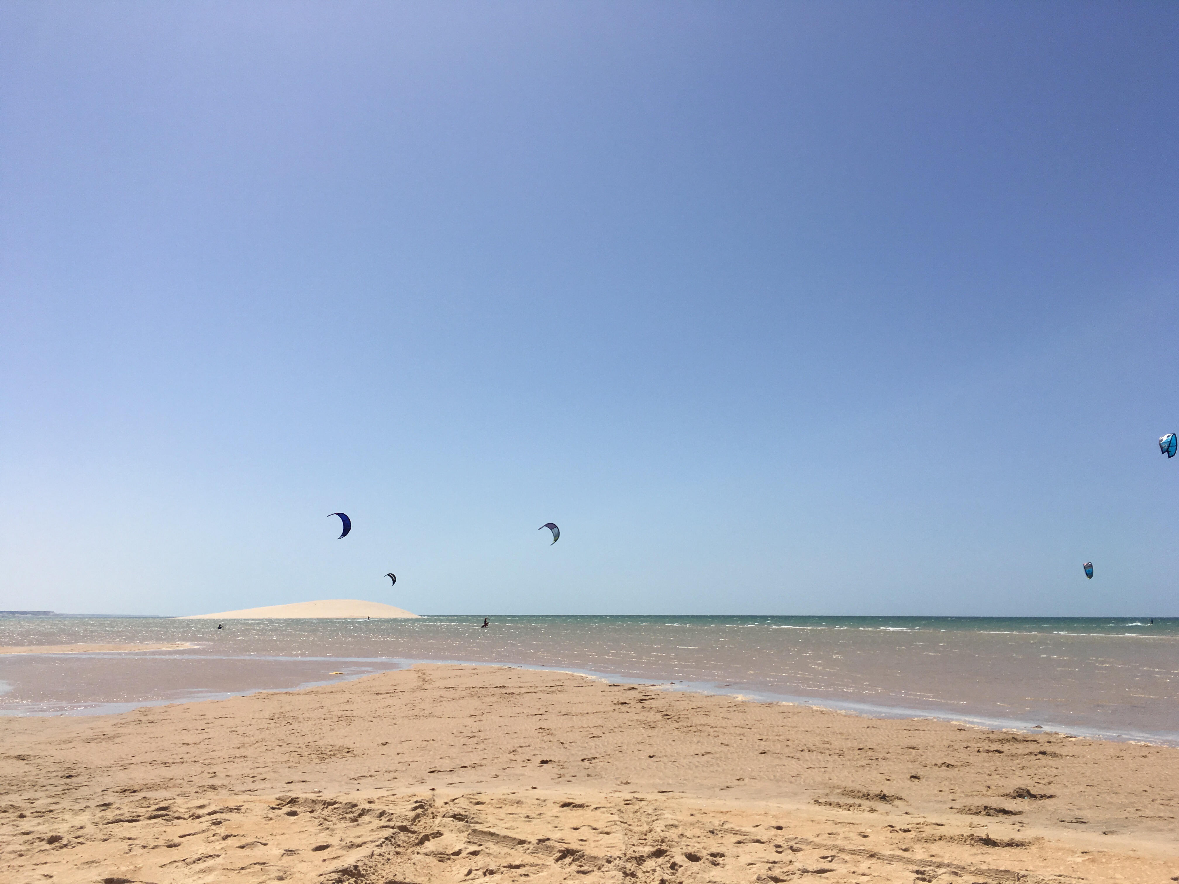 Die riesige Flachwasserlagune bietet bei Ebbe und Flut ein super großes Stehrevier, das sich über mehrere Kilometer erstreckt. Das ist v.a. für mich als Anfänger praktisch, weil man im Wasser stehend den Kite viel besser in die Luft bekommt, als wenn man im Wasser schwimmt. Und dabei ist diese Lagune nur ein kleiner Teil einer noch viel größeren. So richtig bewusst wird einem das erst, wenn man sich das Ganze auf der Karte noch mal genauer anschaut.
