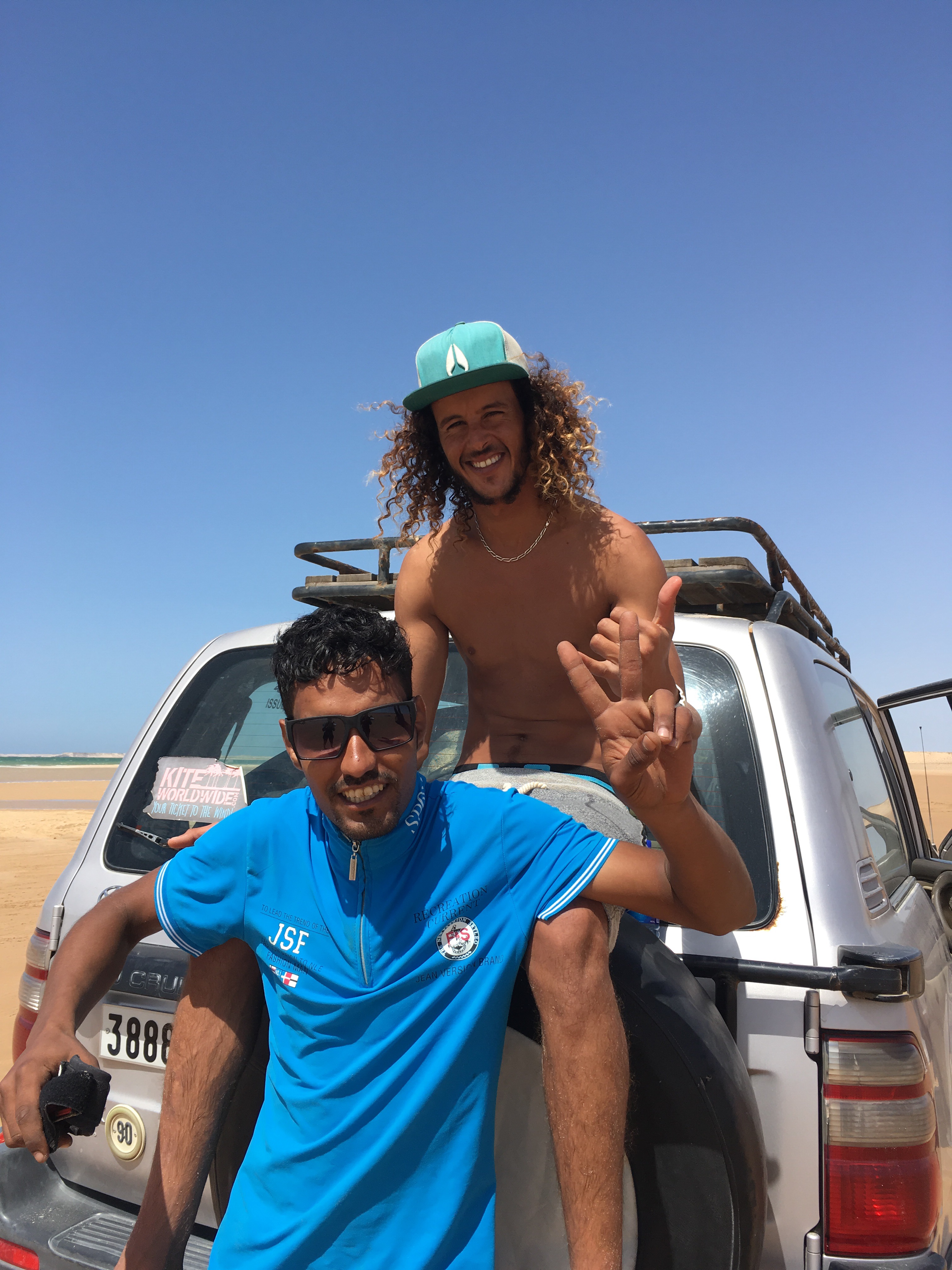 Just in Time, kurz vor null Uhr und schon etwas geplättet (v.a. vom Schnupfen, den ich mir kurz zuvor eingefangen hatte und mir beim Landen ziemlich Ohrenschmerzen bescherte) wollte ich den beiden jungen, ungestümen Männern vor dem windverwehten Flughafen in Dakhla erst gar nicht so recht trauen, als sie mir, nur mit einer KiteWordWide-Handyhülle als offizielles Erkennungszeichen ausgestattet, direkt meinen Koffer abnahmen und mich freundlich und wild gestikulierend auf englisch in ihr Auto komplimentierten. Aber hatte ich eine Wahl? Wohl kaum.