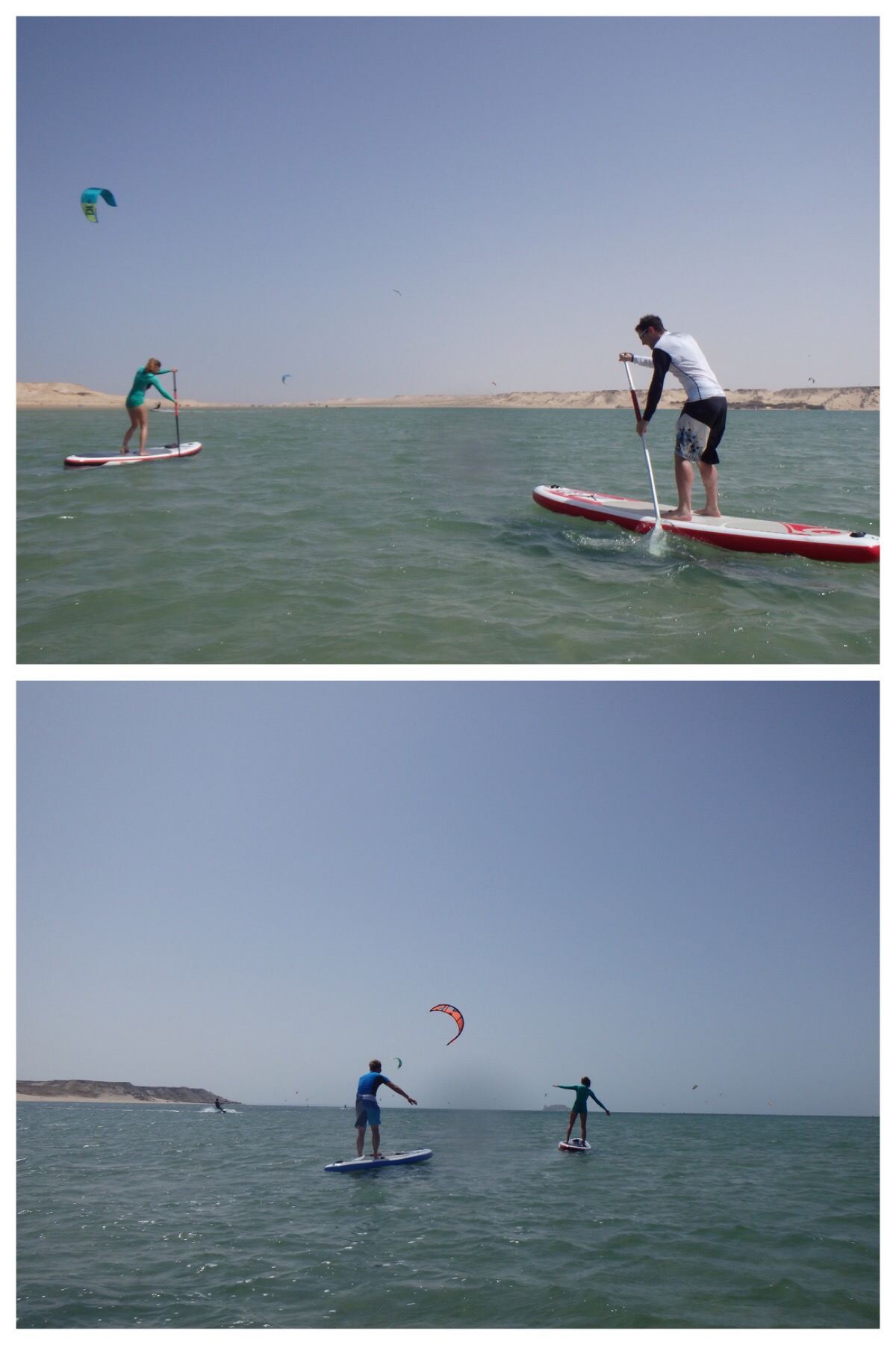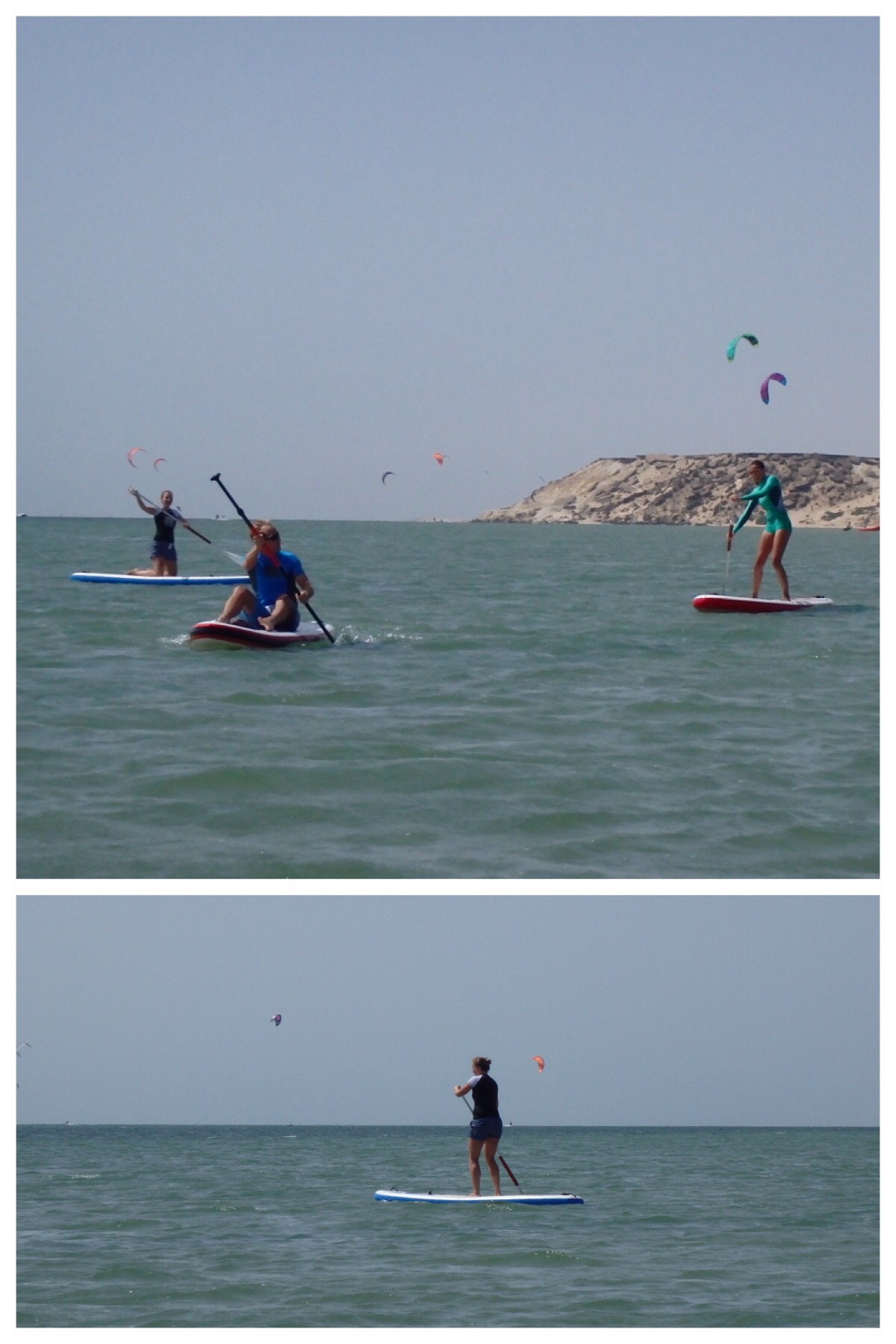 Also fletzen wir uns an den Pool und chillen. Bis uns die Idee kam, die drei bislang ungenutzten SUPs aus dem Kitecenter zu testen. Und eins flux drei waren wir damit am Strand und schipperten und paddelten damit am Ufer im kristallklarem Wasser hoch und runter.